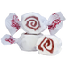 Each chewy candy is designed with a striking appearance, featuring a white base swirled with vibrant red coloring to create a visually appealing, dessert style look. Every piece is individually twist wrapped in waxed paper to help maintain freshness while making it easy to share, store, or display. The taffy is round in shape and approximately ¾ inch in diameter, offering a satisfying bite size chew with classic salt water taffy texture.